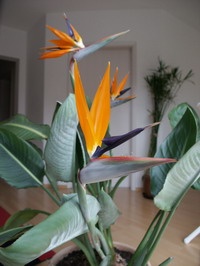 Das ganze Jahr über kann sie Blühen. Als Schnittblume ist sie ca.10-14 Tage haltbar. Auf den Kanaren liegt der Preis für eine Strelizie bei rund 2,50 DM. Hier in Deutschland bei ca. 7,00 DM Eine weitere Art, aber keine Schnittblume, ist die große Strelizie. Sie kann bis zu vier Meter Höhe erreichen. Ihre Blüten sind bläulich-weiß.