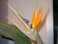 Das sie von den Bananengewächsen abstammt ist deutlich zu erkennen, große fächerförmige Blätter umgeben die Blüte. In vielen Hotelanlagen, Parks, Plazas und Vorgärten trifft man die Strelizie an. |