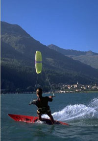 beginner courses on Lake St. Moritz and Lake Silvaplana, restaurant, surfshop 'Windsurfing